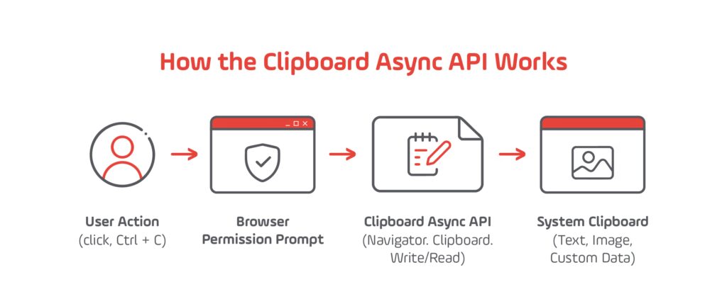 In earlier web environments, clipboard operations were handled synchronously, blocking UI updates and raising security issues. By contrast, the Clipboard Async API uses modern permissions and promises, ensuring that all interactions occur in response to explicit user actions such as clicks or keyboard shortcuts. As described in the web.dev overview of the Async Clipboard API, this design offers both better security and improved performance, aligning with how modern JavaScript APIs are reshaping browser-based interactivity in 2025.